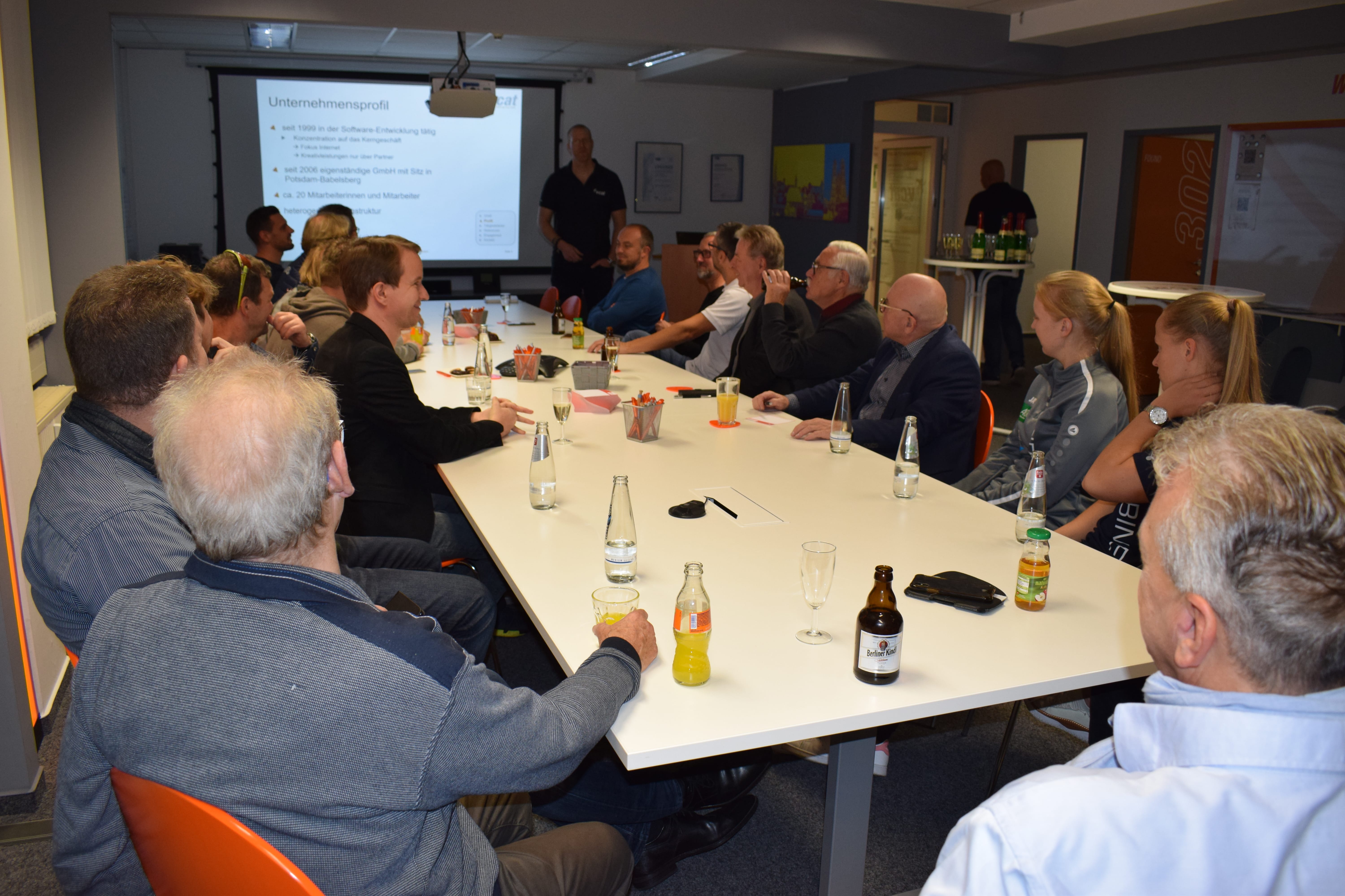 Am vergangenen Dienstagabend war die VCAT Consulting GmbH Gastgeber der vierten Veranstaltung „Netzwerken mit Turbine“. Das Netzwerktreffen des Frauenbundesligisten findet regelmäßig bei verschiedenen Partnern und Sponsoren statt. VCAT unterstützt den 1.FFC Turbine Potsdam seit 2016 und betreut die Internetseite. Der Abend stand unter dem Motto „P1NA trifft Turbine“ und war gleichzeitig auch das diesjährige Herbst-Event des P1NA-Netzwerks. VCAT-Geschäftsführer Nico Danneberg eröffnete den Abend mit einer kurzen Firmenpräsentation. Danach stellten sich die ca. 30 Teilnehmer beider Netzwerke in einer Vorstellungsrunde vor.